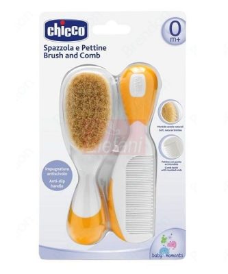 Chicco Fésű-kefe természetes sörte #narancssárga