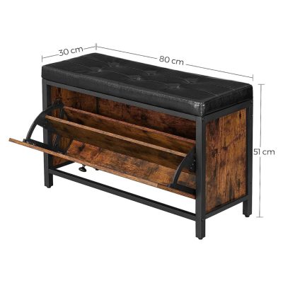 Cipőpad, cipőtároló párnázott üléssel, rusztikus barna és fekete