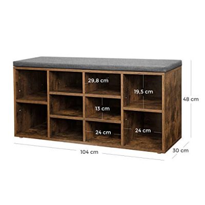 Cipőpad, cipőpolc, cipőtartó, tárolószekrény, 10 rekeszes, párnával, bejárathoz, 104 x 30 x 48 cm, rusztikus barna