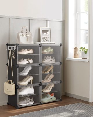 • [Rengeteg hely] Ez a műanyag cipőtároló rendszer, amely akár 24 pár cipő tárolására is alkalmas, táskák és ruhák tárolására is használható. Helytakarékos oldalsó kampóinak köszönhetően kényelmes módja annak, hogy kalapokat vagy kutyapórázokat akasszanak.