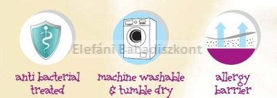- Kétrétegű: a babával érintkező puha tapintású pamut és 100%-ban vízálló poliuretán