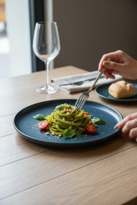 A magas perem kialakítás nem csak design: praktikus is. Ideális szószos ételekhez, tésztákhoz, rizottókhoz vagy desszertekhez, ahol fontos, hogy az étel egyben maradjon és jól komponálható legyen.