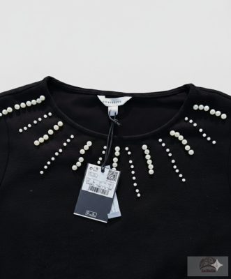 • Cortefiel Gyöngyös Díszítésű Elegáns Felső – Fekete