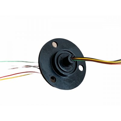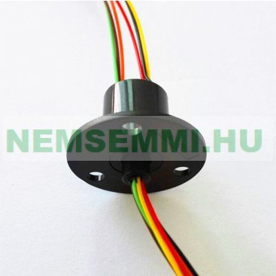 • Csúszógyűrű forgó érintkező 2A 6 vezetékes, nagy karimás kábelcsavarodás ellen, pl. kamera, robot, szélkerék, szélturbinába, aranyozott érintkezőkkel.