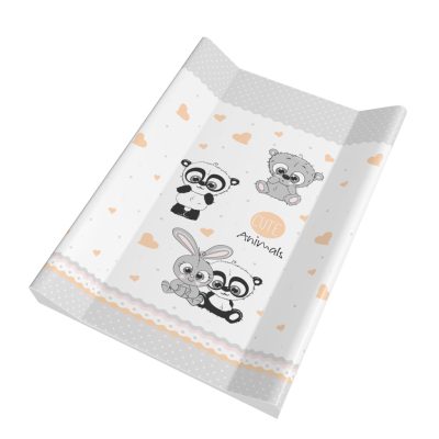 Cuki Állatok – Pelenkázólap merev peremes 70×50 cm | Szürke, kis szívecskékkel