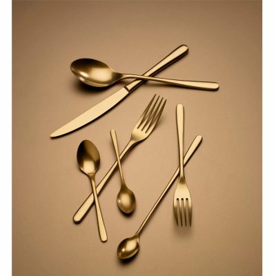 A LUI GOLD kollekció ideális választás nemcsak modern enteriőrökbe, hanem klasszikus konyhákba vagy extravagáns hangsúllyal rendelkező étkezőkbe is. Letisztult formavilág, díszítések nélküli megjelenés és gyönyörű, matt felület jellemzi. Ez a kollekció tökéletes azok számára, akik modern stíluselemeket keresnek. Az evőeszközök lekerekített, masszív nyélkialakítása kiválóan hangsúlyozza a vonal minimalista karakterét.