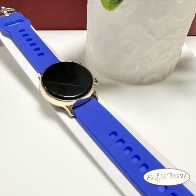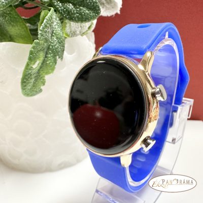 • Digitális karóra , női, kör alakú, arany színű tokkal, szilikon szíjjal- kék