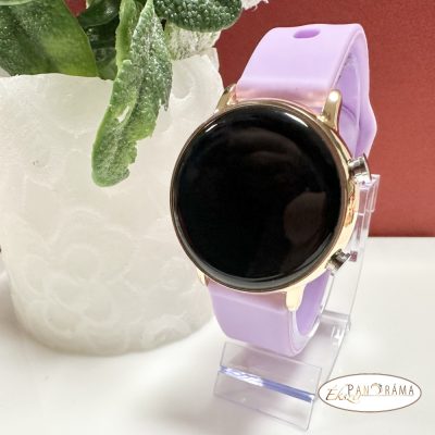 Digitális karóra , női, kör alakú, arany színű tokkal, szilikon szíjjal- Lila