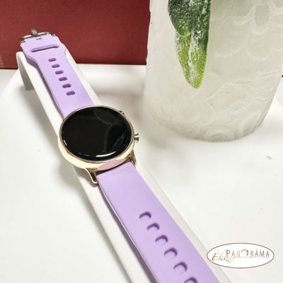 • Digitális karóra , női, kör alakú, arany színű tokkal, szilikon szíjjal- Lila