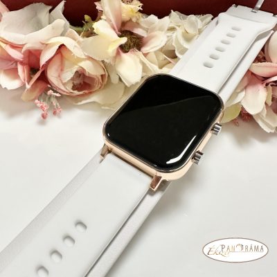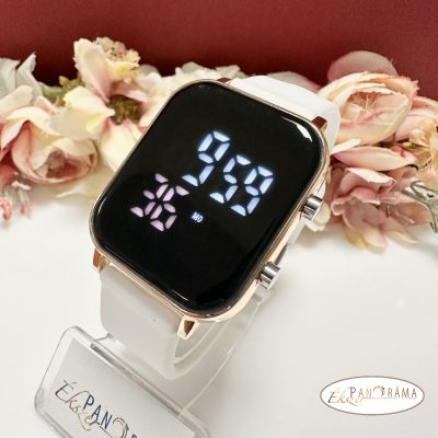 • Digitális karóra , női, szögletes, arany színű tokkal, fehér szilikon szíjjal