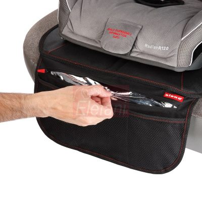 - Az első zseb tartalmaz egy kinyitható napellenzőt, mely védi a menetirányba néző autósülést a napfénytől és hőtől