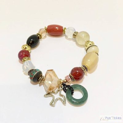 Trendi, mutatós karkötő, többféle ásványból. Átmérője 70 mm