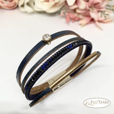 • Divatos bőrhatású karkötő strasszokkal, mágnes zárral - Blue