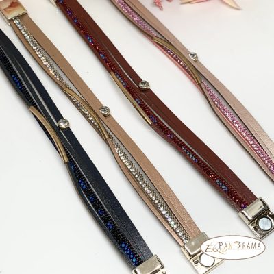 Divatos bőrhatású karkötő strasszokkal, középen kis kővel díszítve.