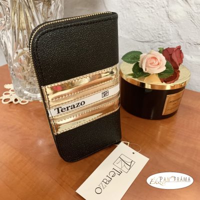 • Divatos női pénztárca, rostbőr- Terazo fekete-arany