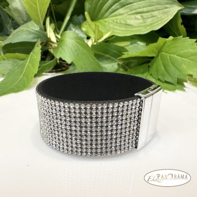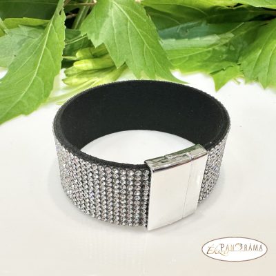 Divatos bőrhatású karkötő tele csillogó kristályokkal.