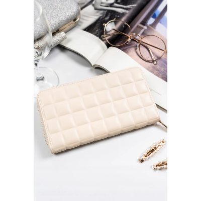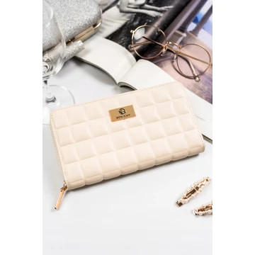 A pénztárca külső részén cipzáras záródás található, amely gyors és biztonságos hozzáférést nyújt. A belső tér átgondolt elrendezése megkönnyíti a mindennapi használatot, míg az aranyszínű részletek tovább növelik az elegancia érzetét.