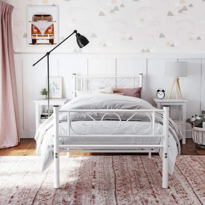 • Egyszemélyes ágykeret, fém ágykeret, fehér