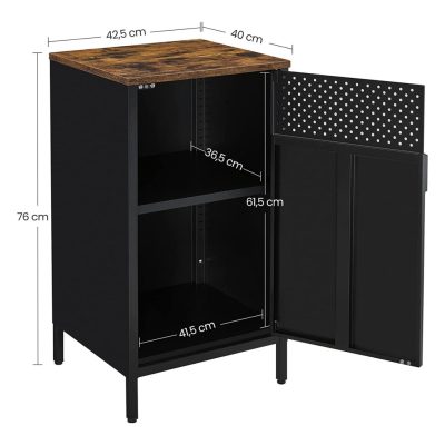 éjjeliszekrény, oldalsó szekrény, ajtó mágnessel, állítható polc, hálószobába, nappaliba, acélkeret, ipari stílusú, vintage barna/fekete: