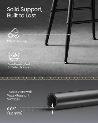 • Kényelem minden alkalommal, amikor leül: Futtassa végig a kezét a sima ülésen, és süllyedjen bele a 8 cm vastag, rendkívül rugalmas habszivacsba.Ezek a bárszékek kényelmes ülésélményt biztosítanak, amely kiállja az idő próbáját