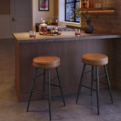Ekho Collection 2db-os bárszékek, konyhai pultszékek, reggelizőszékek, műbőr varrással, otthoni bár étkező, könnyen összeszerelhető, karamellbarna: