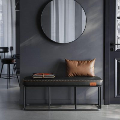 EKHO Collection - Hálószoba, bejárati pad, PU varrással, acélkeret, nappali étkező, századközép modern, 300 kg kapacitás, fekete: