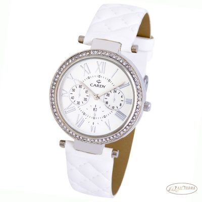 Ékszeróra bőr szíj, ezüst tok, Cardy női - fehér