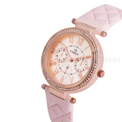 • Ékszeróra bőr szíj, rózsaarany tok, Cardy női - rózsaszín