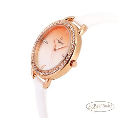• Ékszeróra Cardy - fehér bőr szíj, arany tok, női