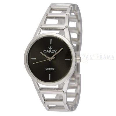 Ékszeróra Cardy női - ezüst színű karóra fekete számlappal