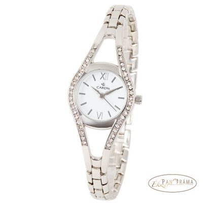 Ékszeróra Cardy női - ezüst színű karóra, fém szíjjal, kristály díszítéssel