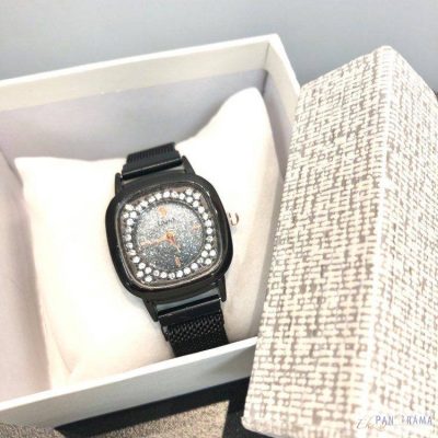 Ékszeróra mágneszáras fém szíjjal - fekete
