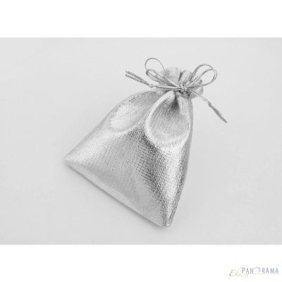 Ezüst metál színű ékszertartó tasak.