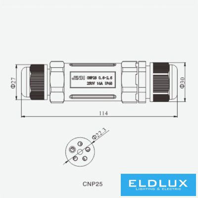 • ELDLUX 3 pólusú nyítható kábeltoldó 2.5mm² IP68