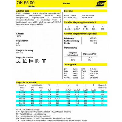 Elektróda bázikus ESAB OK 55.00 2,5/350mm 4,5kg