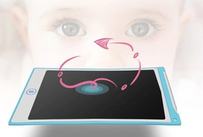 A készlet tartalmaz egy rajztáblát, egy ceruzát és egy CR 2016 elemet