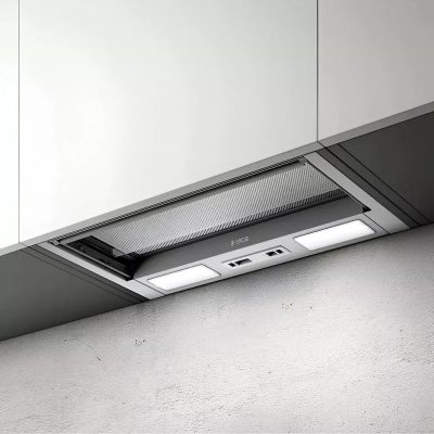 Ez egy minimalista kialakítású, beépített páraelszívó, amelyet úgy terveztek, hogy teljesen elrejthető legyen a fali szekrényben.
