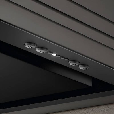 A fali egységbe történő beépítésre tervezett, beépített páraelszívó nagy teljesítményt és alacsony fogyasztást kínál.