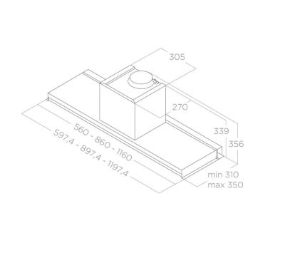 Beépített páraelszívó minimalista kialakítással, amely tökéletesen illeszkedik a fali szekrényekbe. Előlappal van felszerelve, amely védi a szekrényeket a főzés közben felszabaduló gőzöktől.