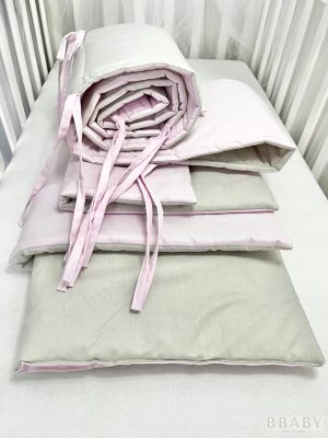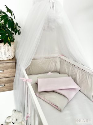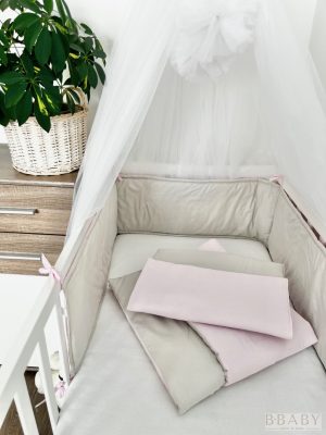 Az Emma szürke-rózsaszín 3 részes babaágynemű szett a finom színek és a természetes anyagok találkozása – egy biztonságos, puha ölelés, amelyben kislányod minden nap nyugodtan pihenhet.