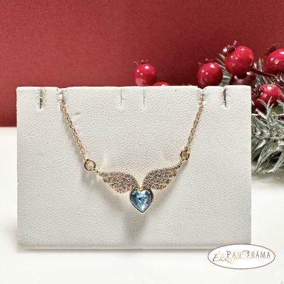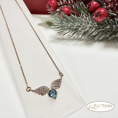 Eredeti kristályos, 18K Gold Filled, medálos nyaklánc - Angel blue