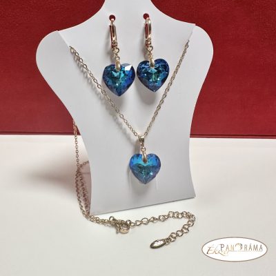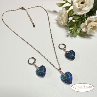• Eredeti kristályos 18K Gold Filled Nyaklánc és fülbevaló Szett - Love Blue