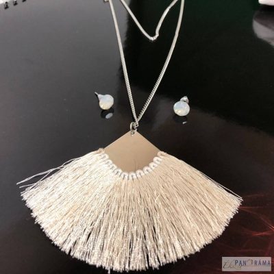 Eredeti Swanis® kristállyal készített antiallergén fülbevaló, amihez nkkel mentes divatos hosszú nyaklánc tartozik! A szett különlegessége, a legyező alakú bojt medál, ami divatossá teszi és kitűnően igazodik a kollekció jellegéhez!
