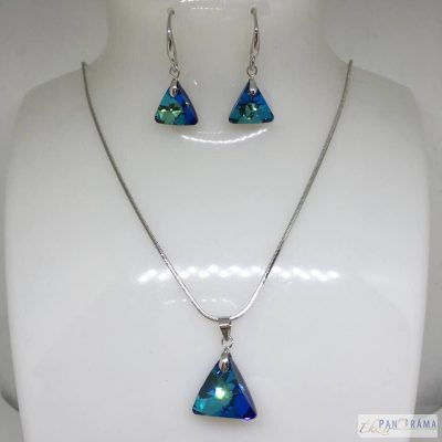 Mérete: Fülbevaló: 25 mm hosszú, kristály mérete: 1x1 cm Medál: kristály: 16 mm teljes hossza: 23 mm Lánc: 45 cm