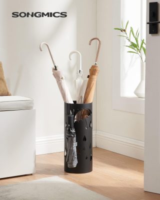 • Amit kapsz: egy fém esernyőtartót, egy vízcsepp tálcát és 4 kampót. Helyezze ezt a SONGMICS állványt a folyosóra, és tartsa rendben az esernyőit