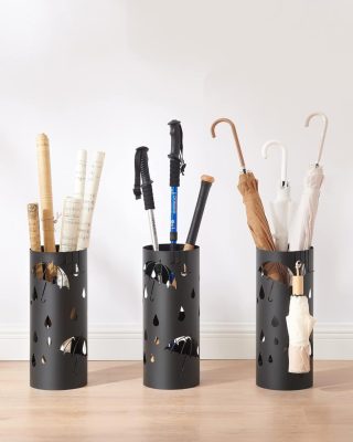 Tárolja az esernyőket stílusosan! Ne tegye többé az esernyőt a padlóra! Tárolja őket ebben az állványban, és helyezze őket a folyosó egyik sarkába – ez a sarok modern és elegáns tárolóhellyé válik. Amikor vendégei belépnek a házadba, rájönnek, hogy az életed az irányításod alatt áll!