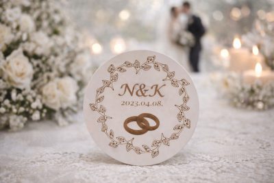 Egy igazán elegáns és személyes esküvői köszönő ajándék a gravírozott monogramos poháralátét. A fa alapú poháralátétre gyönyörű gravírozással kerülhet fel a pár monogramja, így stílusos emléktárggyá válik, amit a vendégek otthon is használhatnak. Ez az egyedi gravírozott poháralátét tökéletesen ötvözi a praktikumot és az érzelmi értéket, hiszen minden alkalommal eszükbe jut róla az esküvőtök hangulata. Letisztult és elegáns megoldás, ami minden stílusú esküvőhöz illik. A monogramos gravírozás exkluzív megjelenést ad ennek a különleges köszönő ajándéknak.