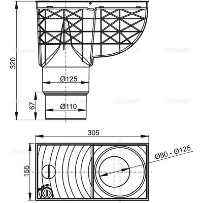 • Esővíz elvezető ereszcsatorna bekötő akna függőleges kifolyással 300x155/125/110 szürke Alcaplast AGV4 S