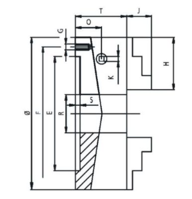 Esztergatokmány, 3 pofás, 250 mm öntvényházas TOS