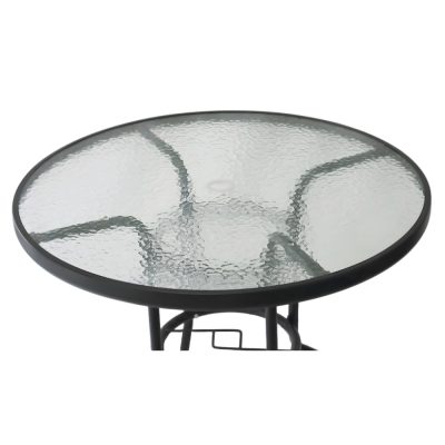 Étkezőasztal kertibútorhoz, BORGEN NEW TYP 2 Anyag: edzett üveg/acél Színváltozat: fekete Méretek (SzéxMéxMa): 80x80x71 cm Lyukkal napernyő számára Kerek Teherbírás: 50 kg Szétszerelve szállítva